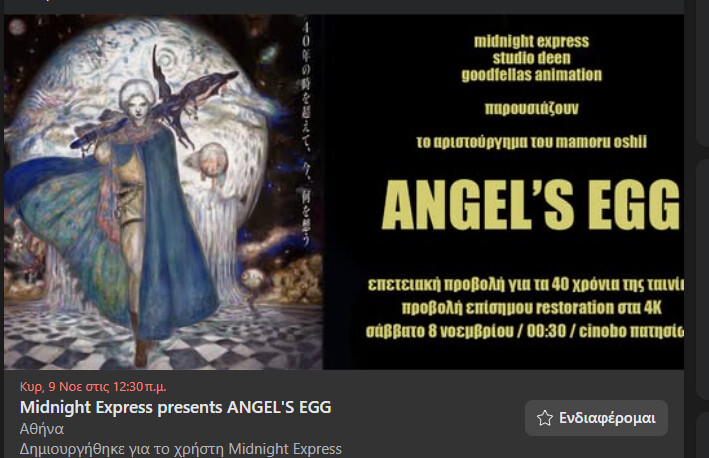 Δυστυχώς δεν θα βρίσκομαι εδω εκεινη την μερα και εχω ξενερώσει παρααα πολυ.Εχει επιρεασει σχεδον ολες τις angelpunk δημιουργίες καθως και παρα πολλους δημιουργούς εκτός anime οπως Μιγιαζακι με bloodborne/DS.