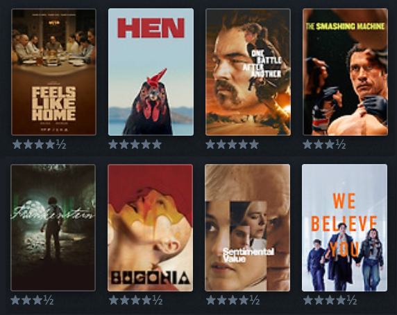 Προφανώς και λείπουν bugonia, συναισθηματικη αξια και naked gun που δεν πρόλαβα. ίσως και κάποιες straight to streaming που μαλλον ξεχνάω.
