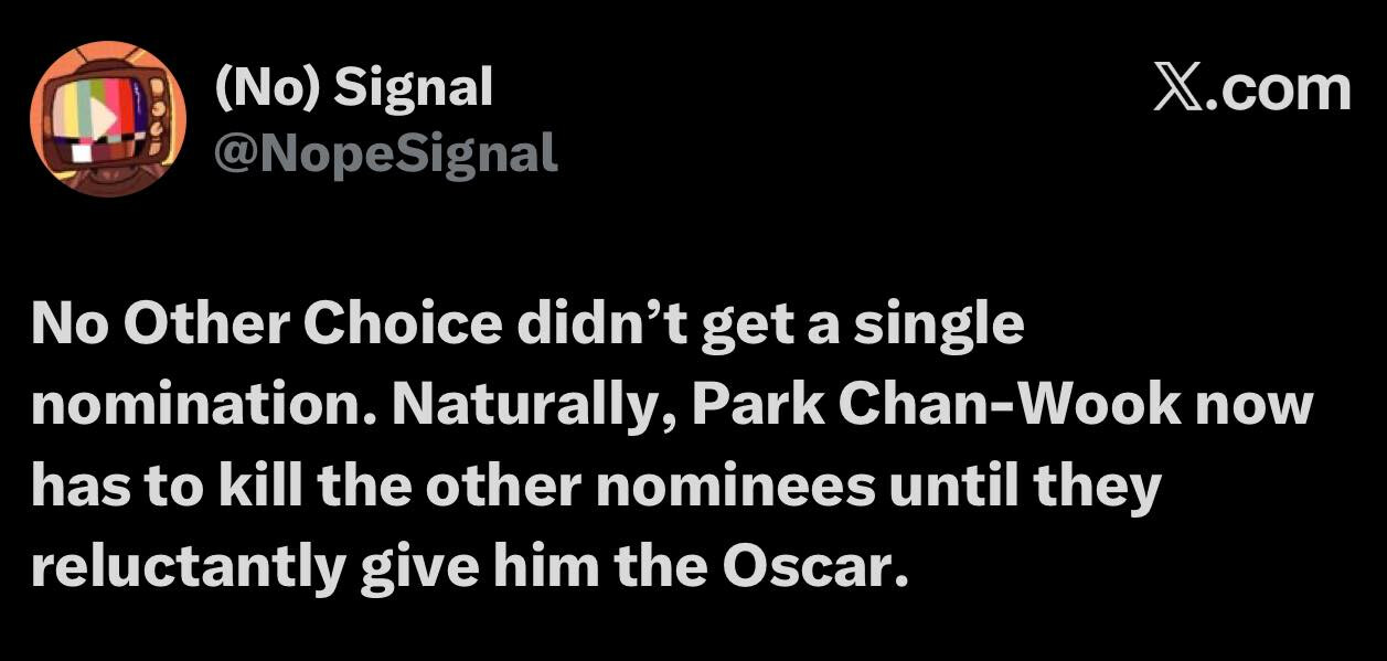 Ενα σχολιο για το No Other Choice, που δυστυχως δε με επεισε καθολου.