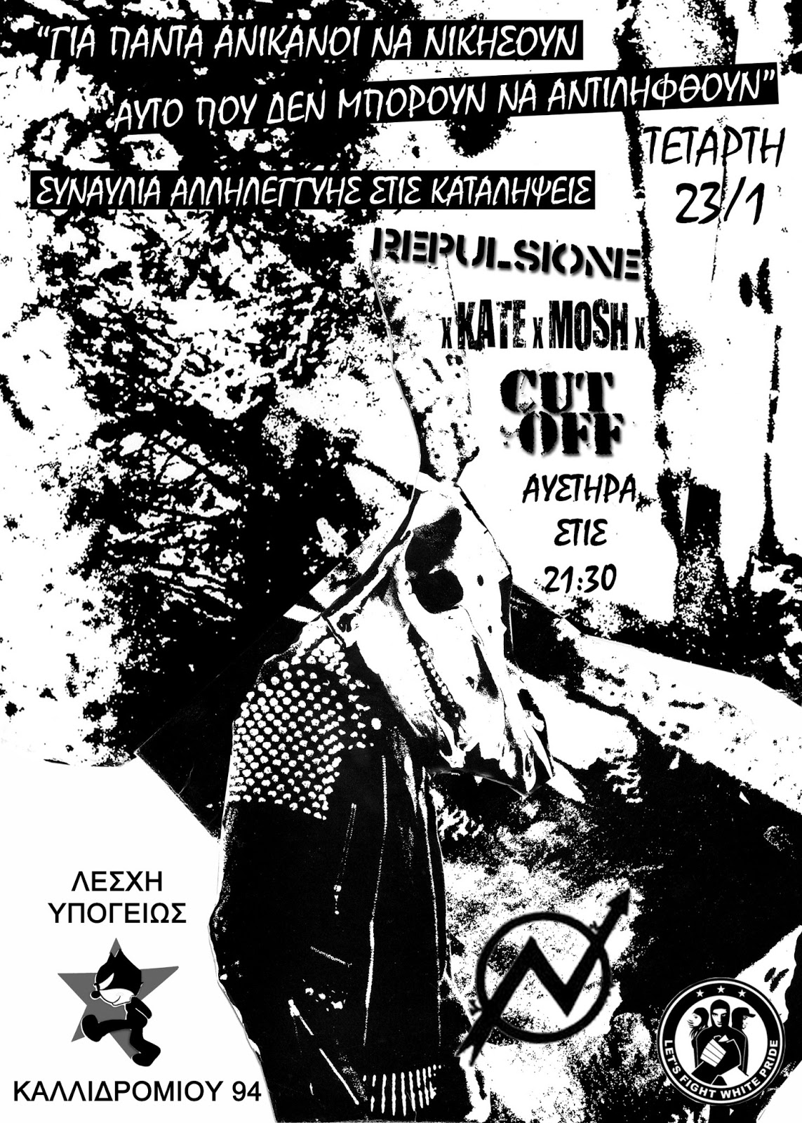 Χαλαρά καλύτερη μπάντα της βραδιάς οι cut off που είναι [U]οδοστρωτήρας [/U]όσες φορές τους έχω δει. διασκευή το filler από minor threat! όμως πάνω απ’ όλα το δικό τους υλικό σκοτώνει. περιμένουμε το επερχόμενο σπλιτ
