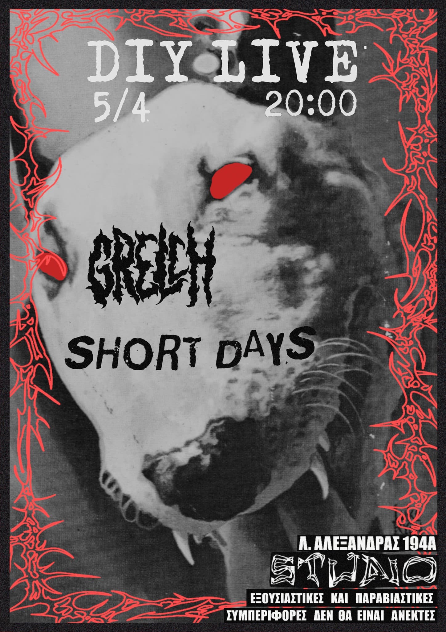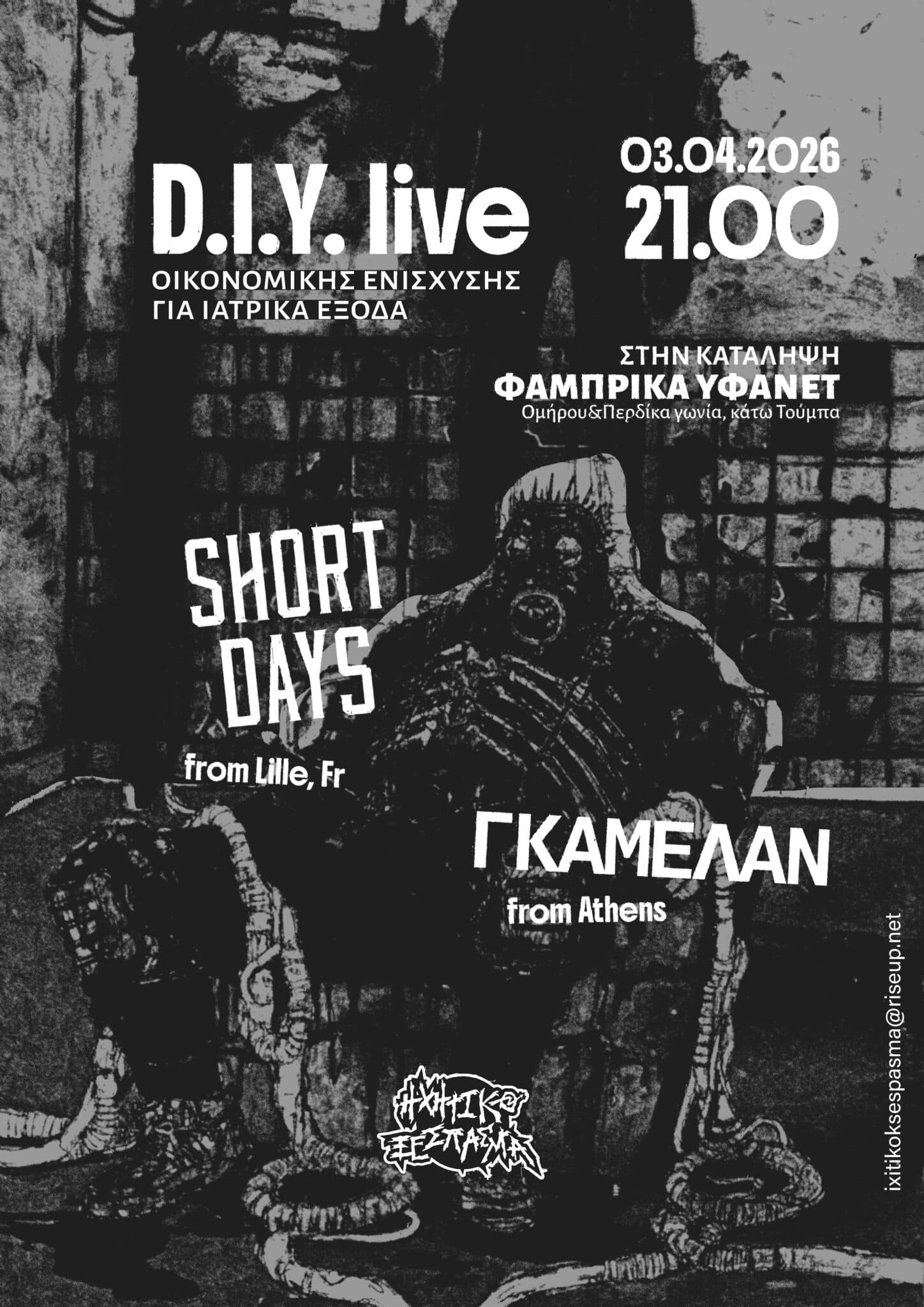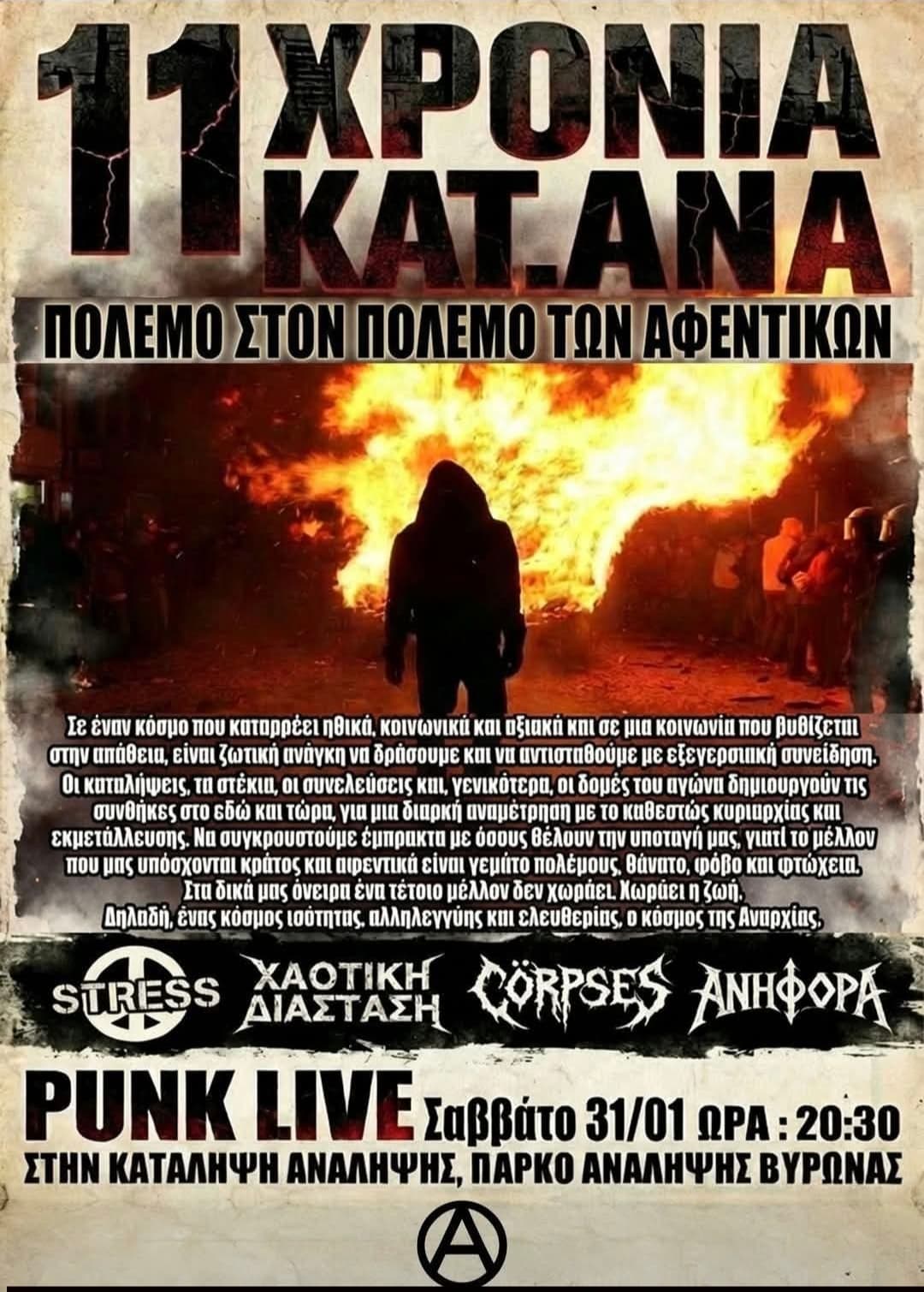 Σάββατο 13/12, στις 21:30, στην κατάληψη Φάμπρικα Υφανέτ, η punk συναυλιακή ομάδα Ηχητικό Ξέσπασμα διοργανώνει Ανίερη Κατάνυξη Ανόσιου ΜΠλακ μέταλ με τη συμμετοχή των: