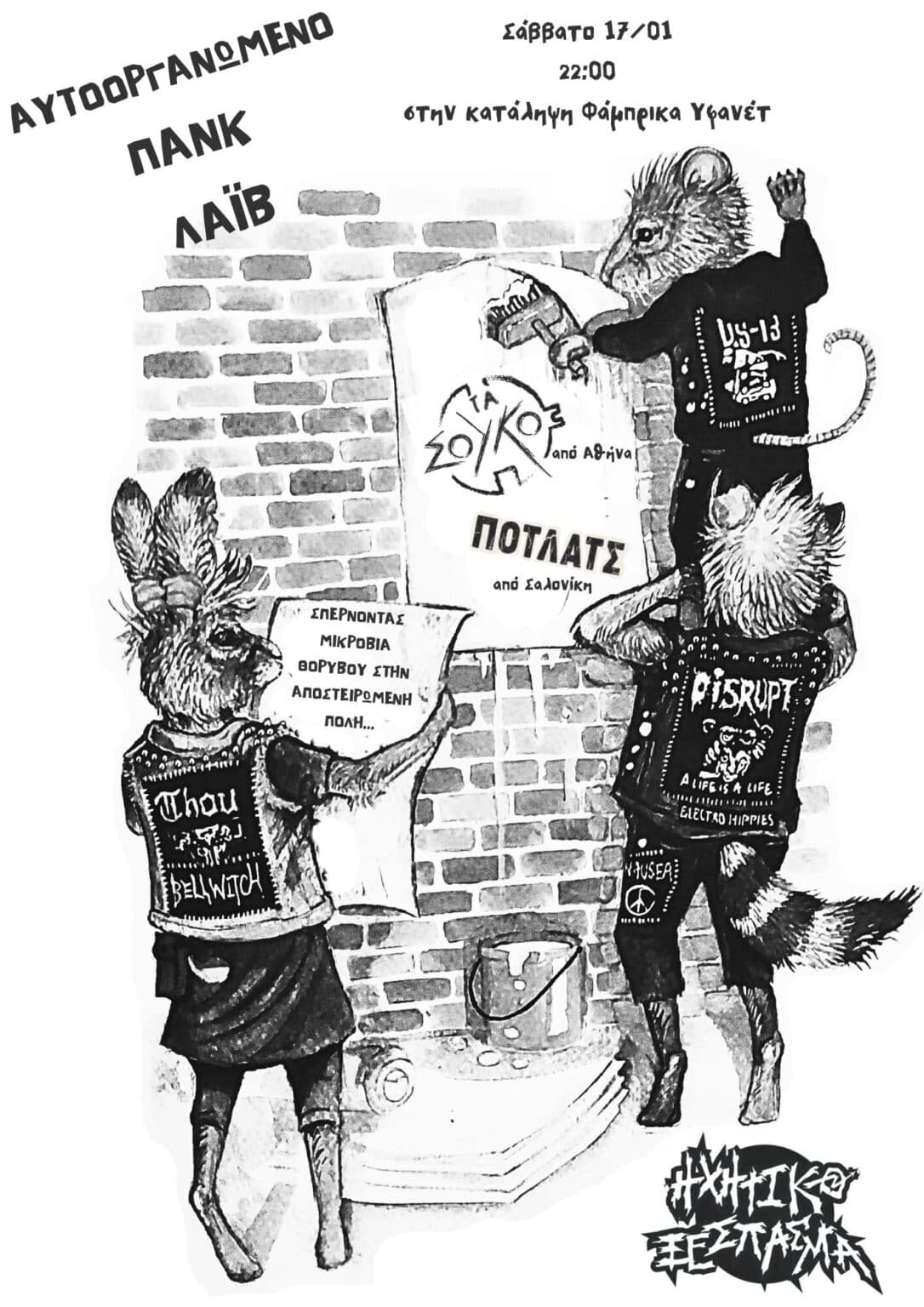 Σάββατο 17/01, στις 22:00, στην κατάληψη Φάμπρικα Υφανέτ, η punk συναυλιακή ομάδα Ηχητικό Ξέσπασμα διοργανώνει D.I.Y. live με τη συμμετοχή των: