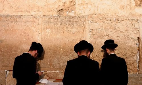 Κατι Εβραιοι που προσκυναν σε εναν ιερο τοιχο.