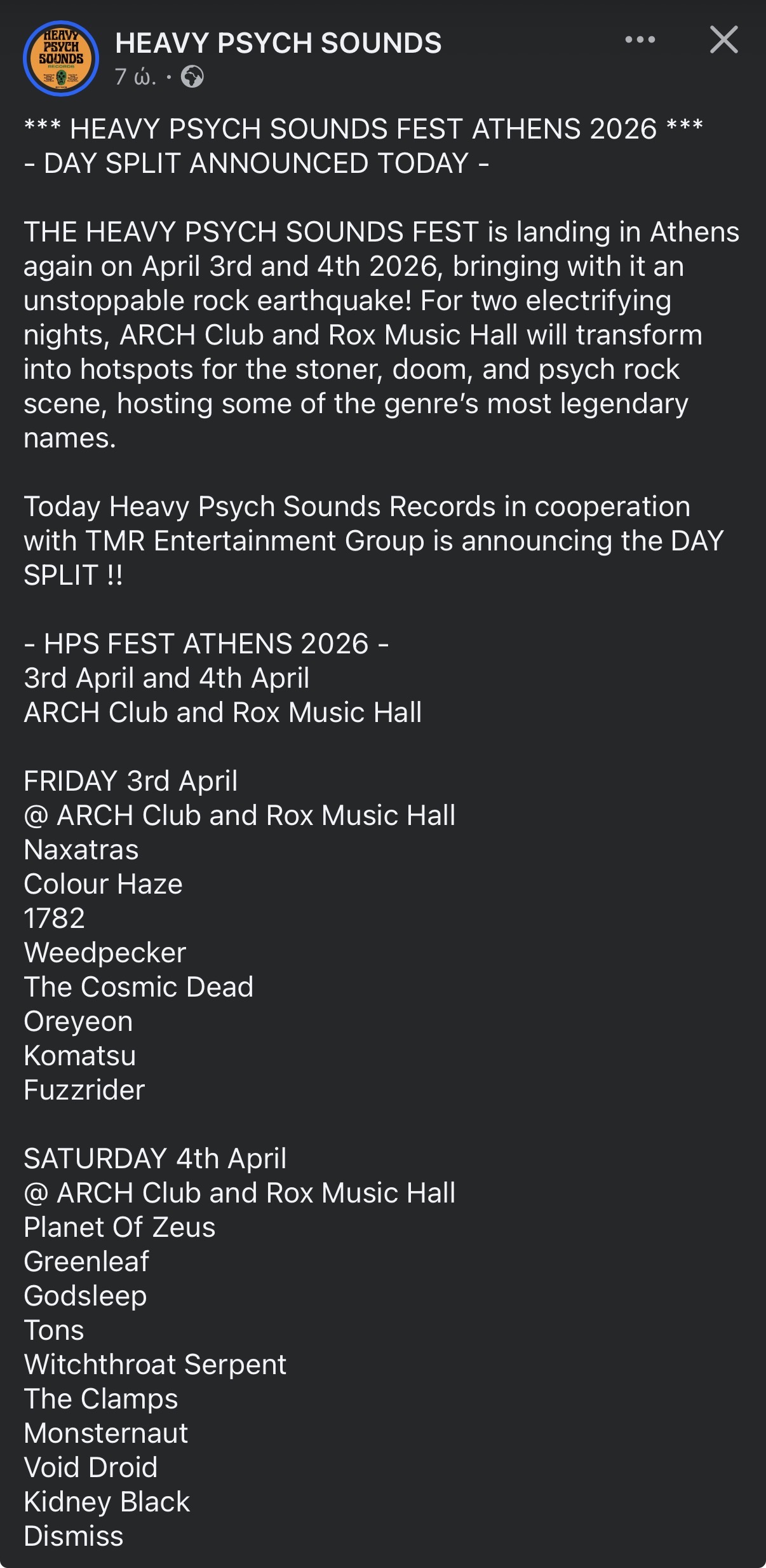 μάλλον θα έρθω για Cosmic Dead και Colour Haze