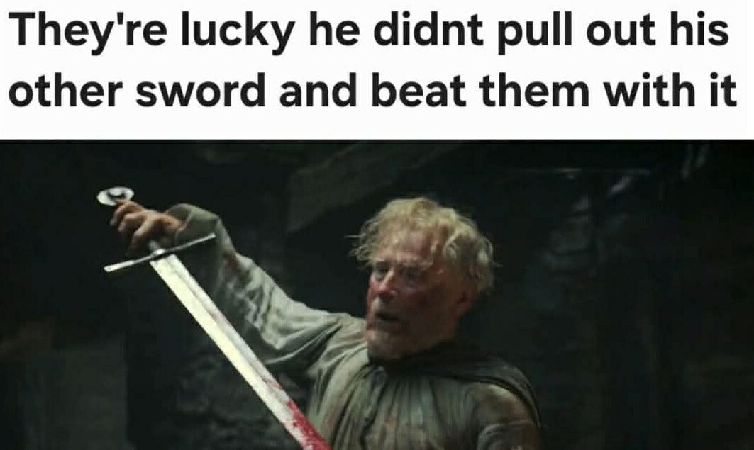 Τωρα οκ ετσι για να κανουμε και λιγο nitpicking που δεν αλλαζει σε τιποτα την απολαυση μου ή την ποιοτητα της σειρας… οταν διαβασα αλλου για “πιο ρεαλιστικη μαχη εβερ” και αλλα τετοια, επρεπε να αναρωτηθω ποσες φορες πρεπει να καρφωθει με σπαθι καποιος για να πεθανει σε ρεαλιστικο επιπεδο, και η απαντηση ειναι μαλλον 2-3 αντε 4 αν κανα δυο απο αυτες ειναι ξωφαλτσες. Τωρα οκ το να εχεις μαχαιρωθει/τρυπηθει/χτυπηθει με mace 10 φορες και να μπορεις να σταθεις ακομα ορθιος, ειναι καπως υπερβολικο, to say the least.