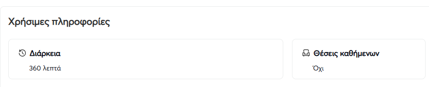 Στα φεστιβάλ δεν έχει καθήμενους συνήθως. Υπάρχουν κάποιοι πάγκοι στους χώρους εστίασης και κάποια καρεκλακια και παγκάκια στα περίπτερα των χορηγών.
