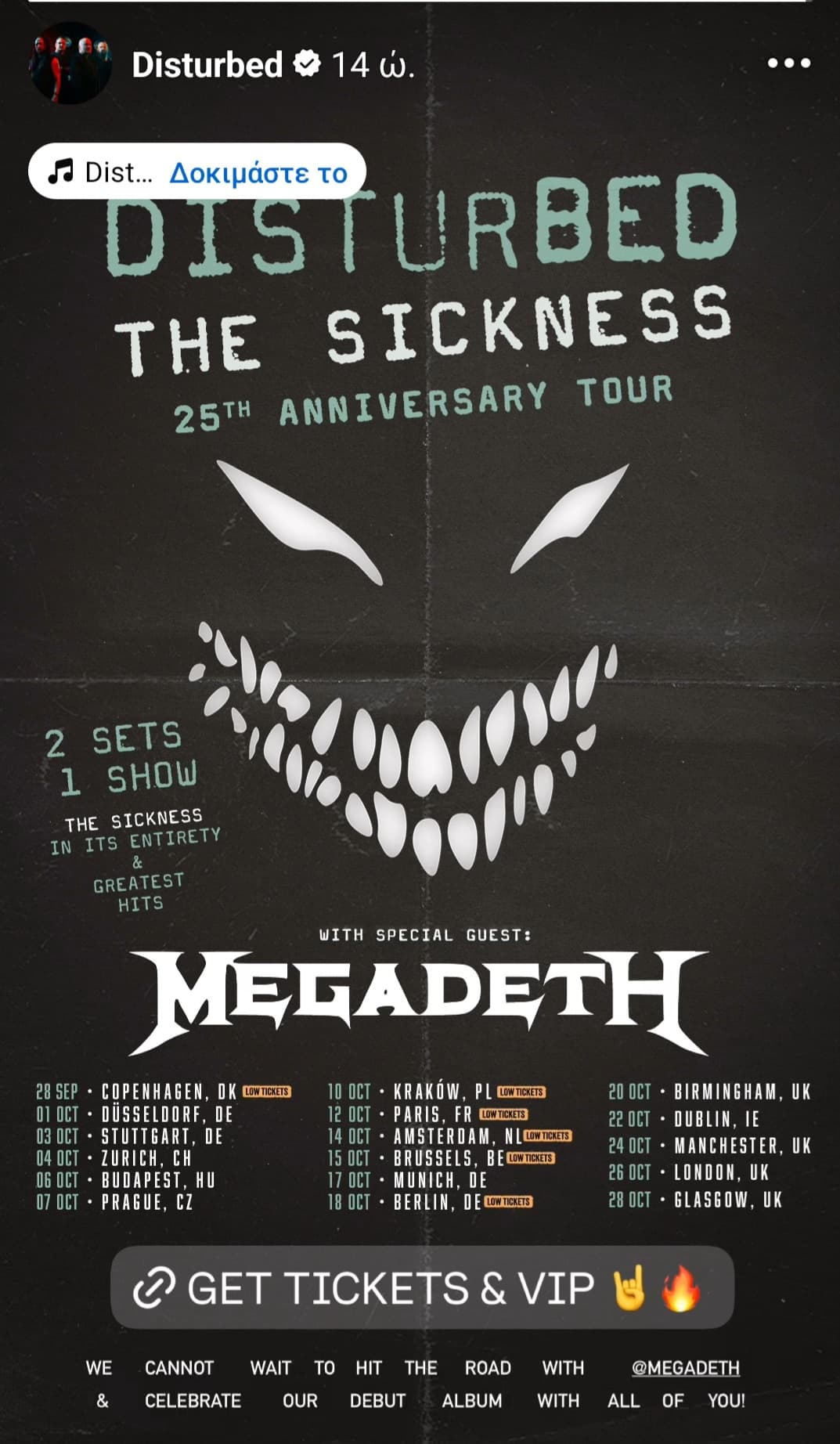 Ας το κάνει δεν λέω αν θέλει να προσελκύσει νεανικό κοινό αλλα ρε φίλε όταν ανακοινώνεις ότι τελειώνεις σε ενάμισι έτος, έτσι θέλεις να σε θυμούνται ; σαπορτ σε μία legacy tour των Disturbed ;