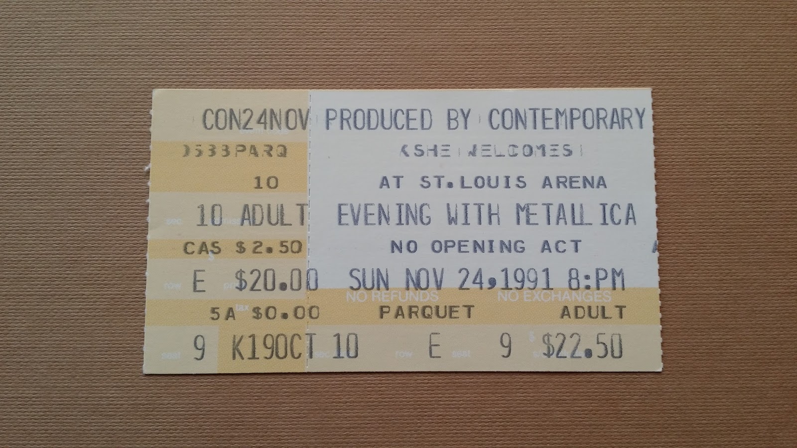 Εδω βλεπουμε εισιτηριο απο το 1991 στην τιμη των $22.50 τελικη τιμη (χωρις ticketmaster και παπαριες) που με τα σημερινα δεδομενα το κομπιουτερακι απο πανω μας δινει $40 για γενικη εισοδο αρενα ε: