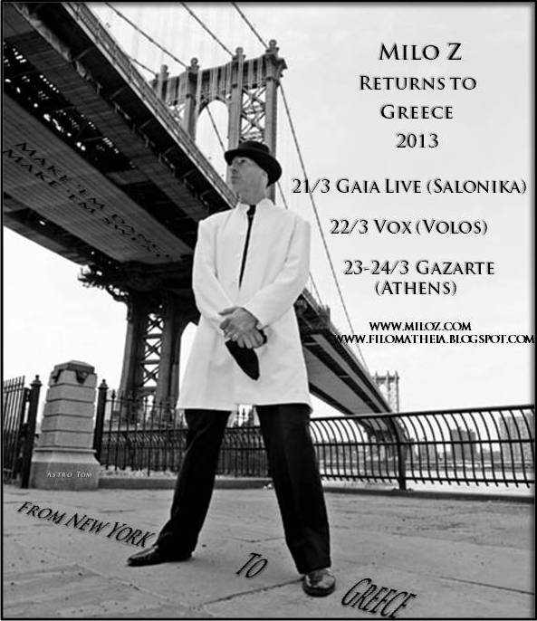 Ο φρενήρης συνδυασμός της Jazz, Funk, Hip Hop των Groovy χορευτικών και Soul ρυθμών, φέρει την υπογραφή του μοναδικού Milo, αδιαμφισβήτητου μετρ του σύγχρονου Nεοϋορκέζικου Funk, ο οποίος τα τελευταία χρόνια έχει δημιουργήσει ένα δικό του cult ρεύμα και ένα φανατικό κοινό όχι μόνο στη Νέα Υόρκη, αλλά και στην Αθήνα με την μεγαλύτερη συναυλία του το 2007 στο Λυκαβηττό με 4000 θεατές !