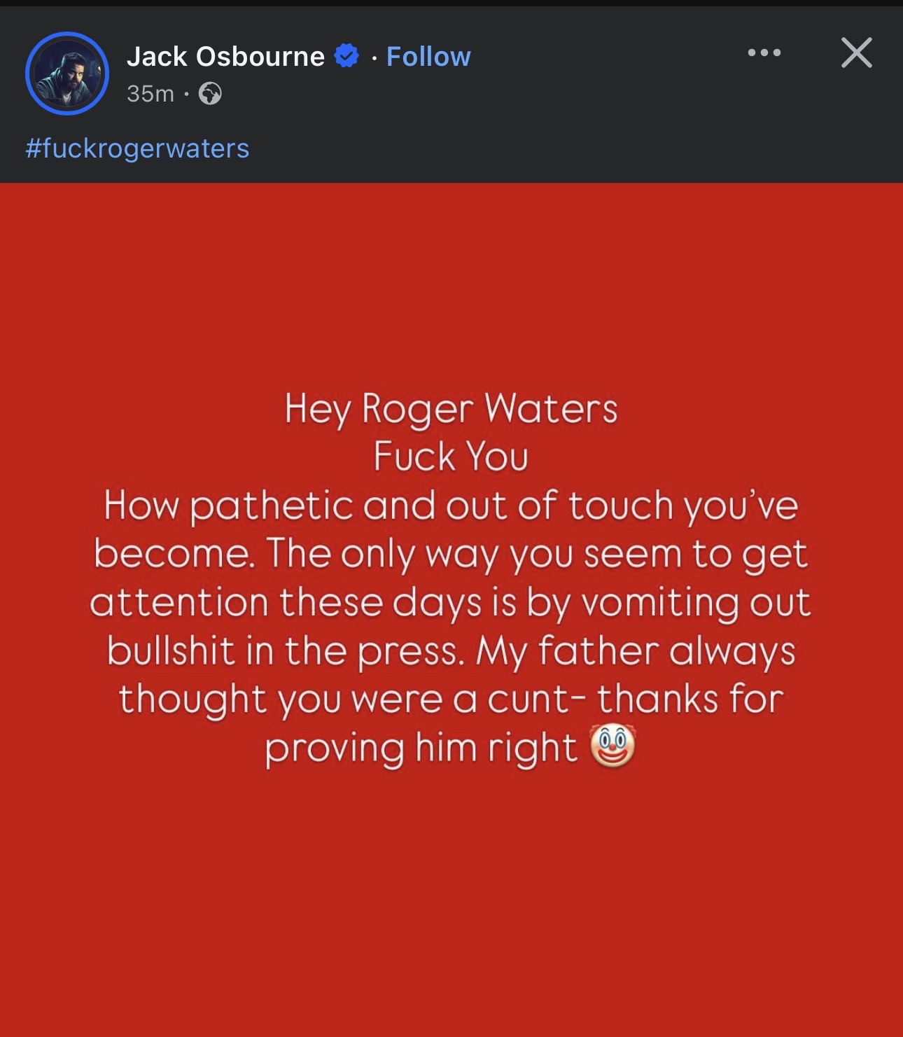 Ο Waters βέβαια, μίλησε με απαξιωτικό τρόπο. Πρακτικά ξεκίνησε με το ότι δεν είναι του γούστου του η μουσική των Sabbath, την πήγε όμως αλλού την κουβέντα. Χωρίς να θέλω να τον υπερασπιστώ, αν τελείωνε στο ότι “Ναι, νταξ, δεν είναι του στυλ μου”, θα τελείωνε εκεί ωραία και καλά. Waters είναι αυτός, με ότι αυτό συνεπάγεται. Πες τη γνώμη σου, όχι όμως τώρα που είναι σχετικά φρέσκο το γεγονός…