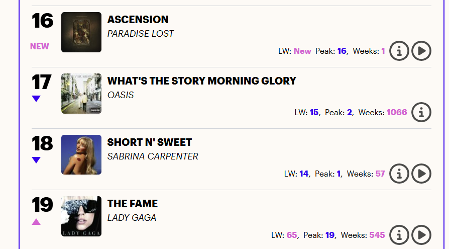 Στο 16 ήταν πριν μετρηθούν πωλήσεις από streaming. Επίσης δεν πέρασε ακόμη μια βδομάδα από την κυκλοφορία ώστε να οριστικοποιηθεί η λίστα.