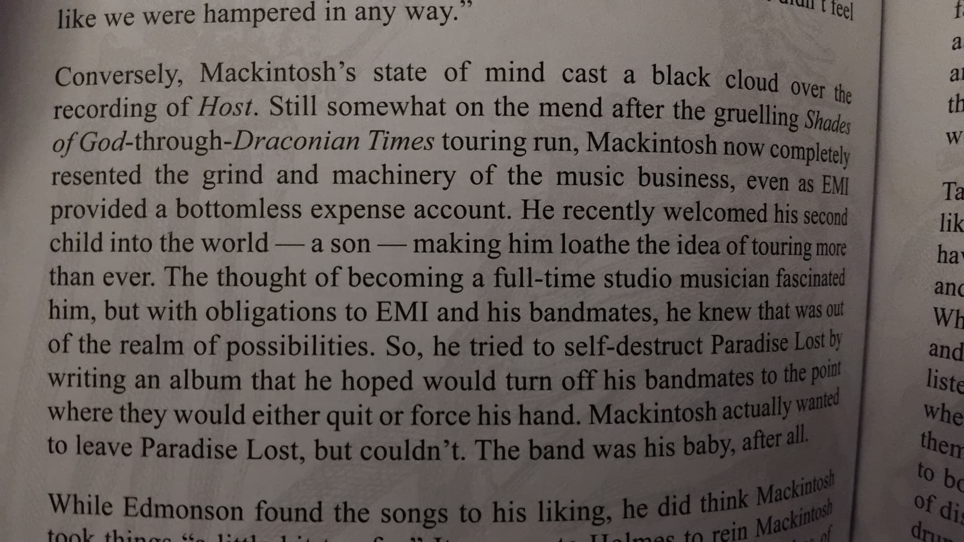 Οι Paradise Lost έχασαν πολύ σε δημοτικότητα με το Host και μετέπειτα με το BIN, αλλά εκεί σταματάει η πτώση. Έγιναν απίστευτα τραγικά σφάλματα από την μπάντα αλλά και από την ΕΜΙ, αφού η εταιρία τους έδωσε υπέρογκα χρηματικά ποσά για promotion κι αυτοί τα έφαγαν σε ταξίδια, ακριβά ξενοδοχεία και πανάκριβα γεύματα. Τα έχουν πει κι οι ίδιοι σε συνεντεύξεις, δεν είναι δικά μου λόγια αυτά. Η ΕΜΙ νόμιζε ότι μετά το airplay που είχαν στο ραδιόφωνο τραγούδια όπως One Second και Say Just Words, είχαν βρει τους νέους Oasis ξέρω γω, και τους έδωσαν έναν σκασμό λεφτά χωρίς να ελέγχουν τίποτα. Επίσης το management των Lost ήταν απλά τραγικό.
