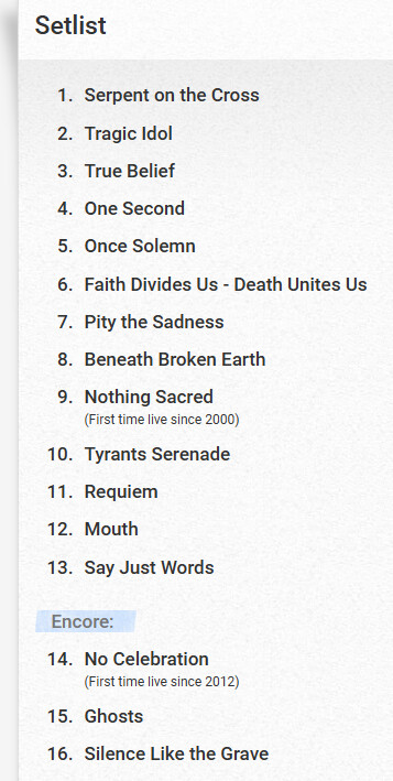 Δυνατό setlist! Θα μπορούσε να κλείνει καλύτερα αλλά οκ, χαλάλι αν είναι να ακούσεις τα υπόλοιπα.