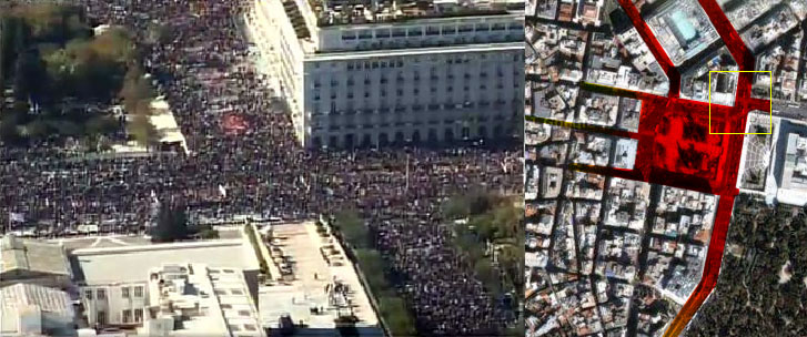 Δεν υπάρχει λόγος να πηγαίνουμε Ομόνοια. Έχουν καθοριστεί διάφορες προσυγκεντρώσεις σε σημεία κοντά στο Σύνταγμα, π.χ. Ακαδημίας, Παλιά Βουλή, Πολεμικό Μουσείο κτλ.