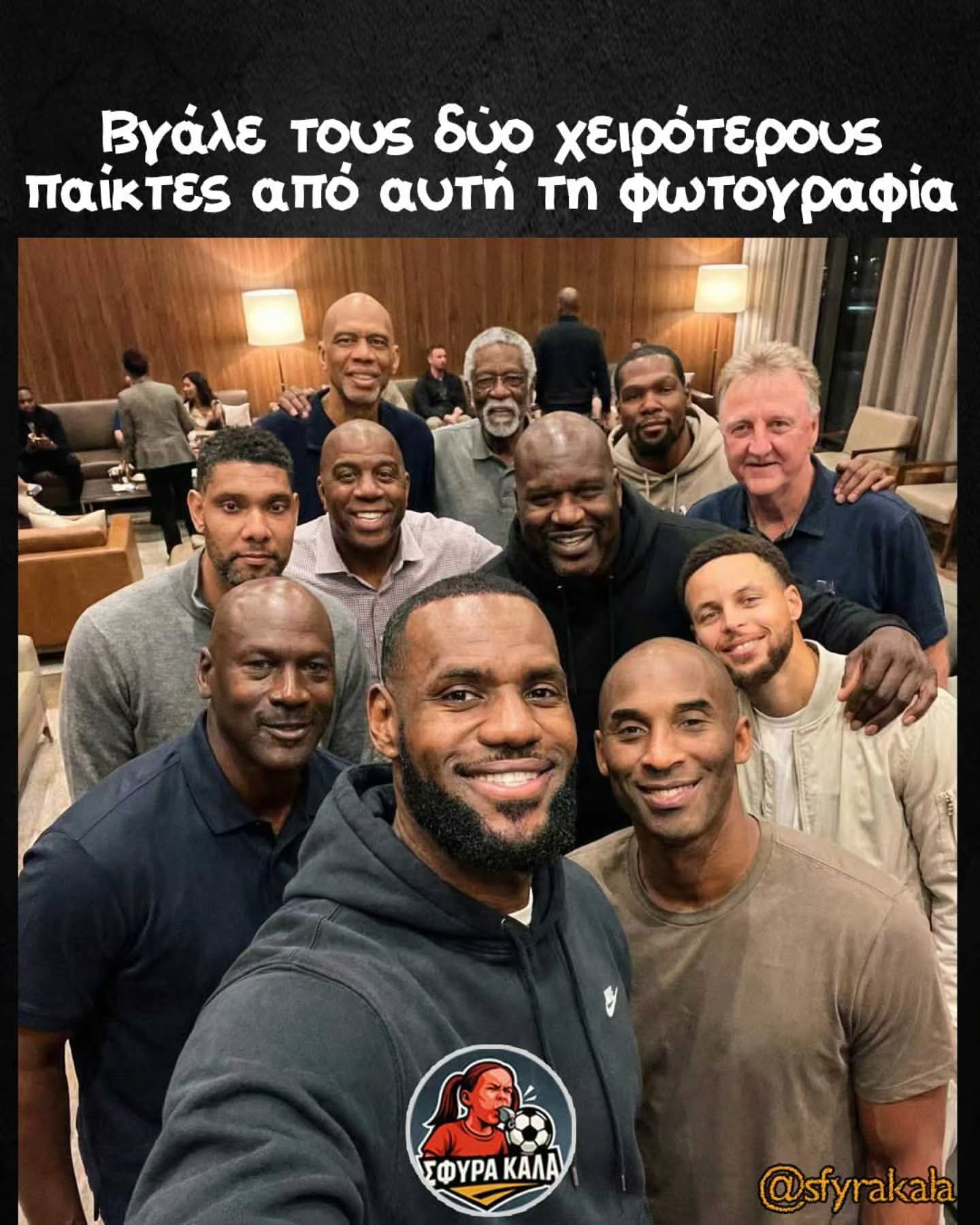 Kanenas pantos den vgazei MJ, Magic, Larry, Shaq, Steph, Kareem.