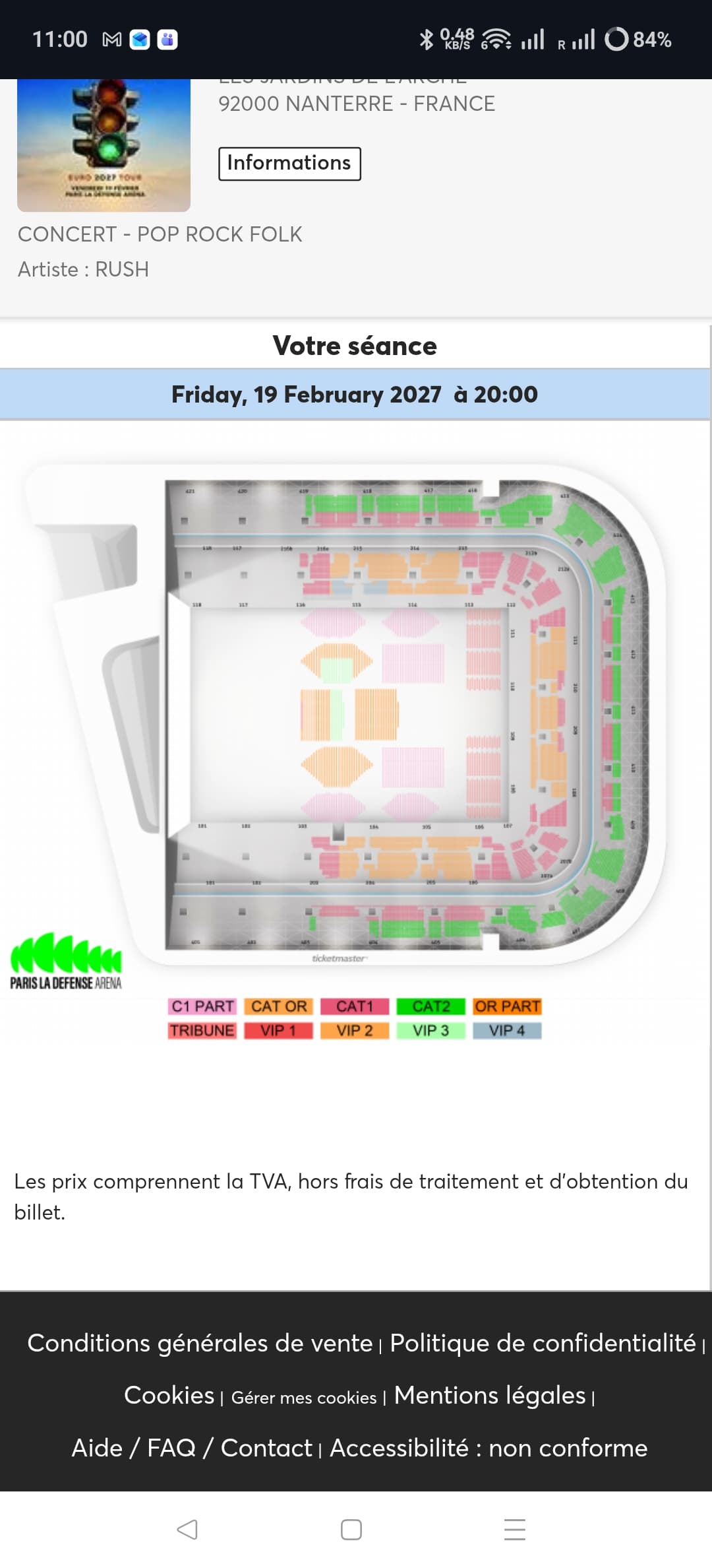 120 στο Παρίσι, αλλά δεν διαλέγεις θέση. Μόνο κατηγορία. Πατησα Cat 1 και με πέταξε σε μία γωνία στις κερκίδες δίπολα στη σκηνή. Στο μεταξύ το seating plan του γηπέδου, μοίαζει με φωτογραφία σε εκδοτήρια πλοίων στην Σχοινούσα το 1993.
