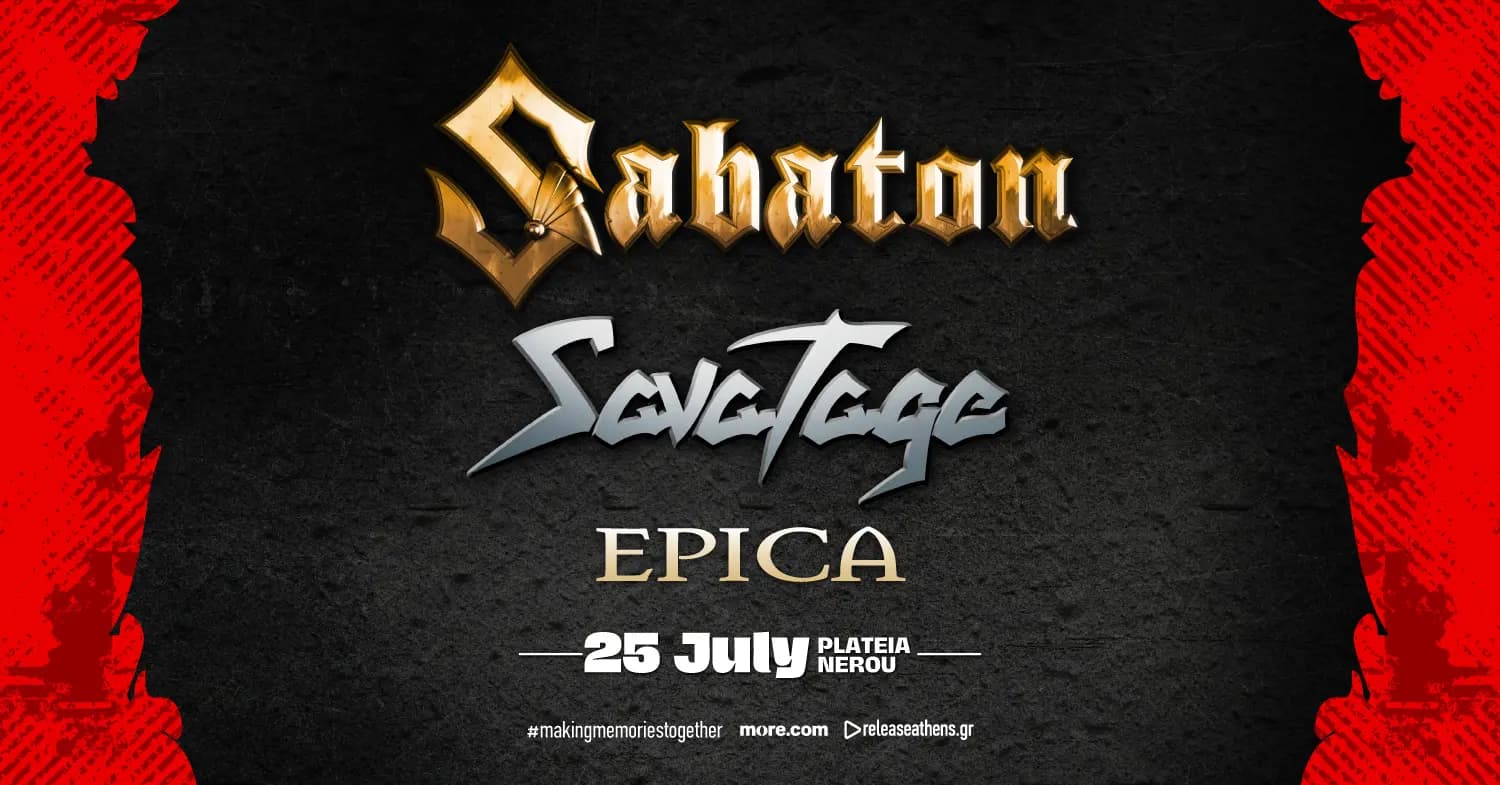 Tο Release Athens 2026 υποδέχεται τους Sabaton το Σάββατο 25 Ιουλίου στην Πλατεία Νερού. Οι Σουηδοί, δυνατότεροι από ποτέ, θα κλείσουν το φεστιβάλ, τέσσερα χρόνια μετά την πρώτη τους εμφάνιση στον ίδιο χώρο. Μαζί τους, οι Savatage , οι οποίοι επιστρέφουν στην Αθήνα μετά από πολλά χρόνια, ως ιδανικοί co-headliners, σε ένα lineup που συμπληρώνουν οι - τόσο αγαπημένοι στη χώρα μας - εκπρόσωποι του symphonic metal, Epica