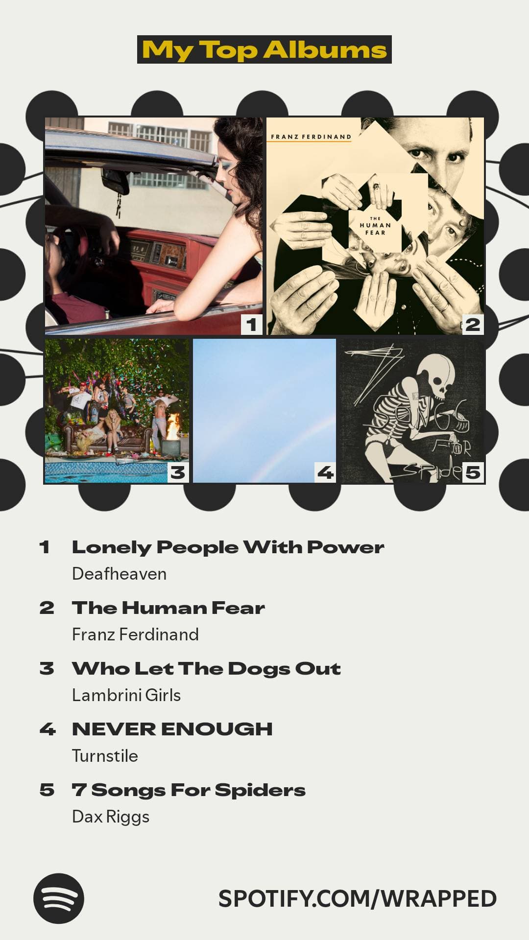 Πάντως όποιος χρησιμοποιεί το last.fm ως εφαρμογή για να κρατάει στατιστικά θα έχει δει οτι το wrapped είναι απλά μια προσέγγιση της πραγματικότητας. Πολλά λάθη και πολλές παραλείψεις σε σχεση με την πραγματικότητα.