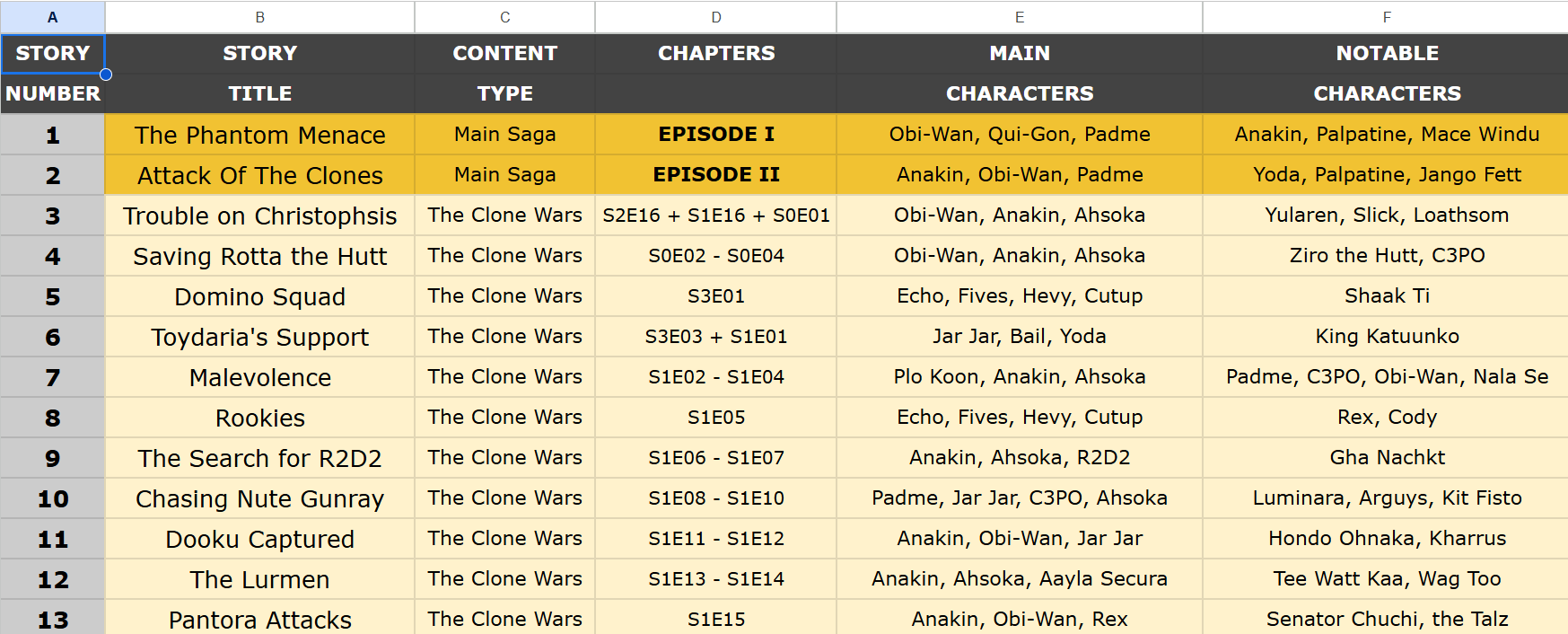 Ειχα ξεκινησει περυσι το καλοκαιρι (2024) μαραθωνιο με χρονολογικη σειρα και ειχα φτασει μεχρι τα μισα του Clone Wars (δηλαδη οχι και παρα πολυ μακρια), αλλα μετα life happened. Μαλιστα εχω και ενα εξελοφυλλο στο οποιο καταγραφω ολες τις “ιστοριες” που μας εχει δωσει το Star Wars, και τους εχω βαλει και τιτλο οπου χρειαζεται, με την λογικη οτι συνηθως 3-4 επεισοδια μιας animated σειρας αποτελουν μια ιστορια. Καποια στιγμη θα το τελειωσω αυτο το project, δεν ξερω ποσο χρονο θα παρει… αλλα τωρα τελευταια με εχει πιασει το μικροβιο Star Wars ξανα, οποτε λογικα συντομα.