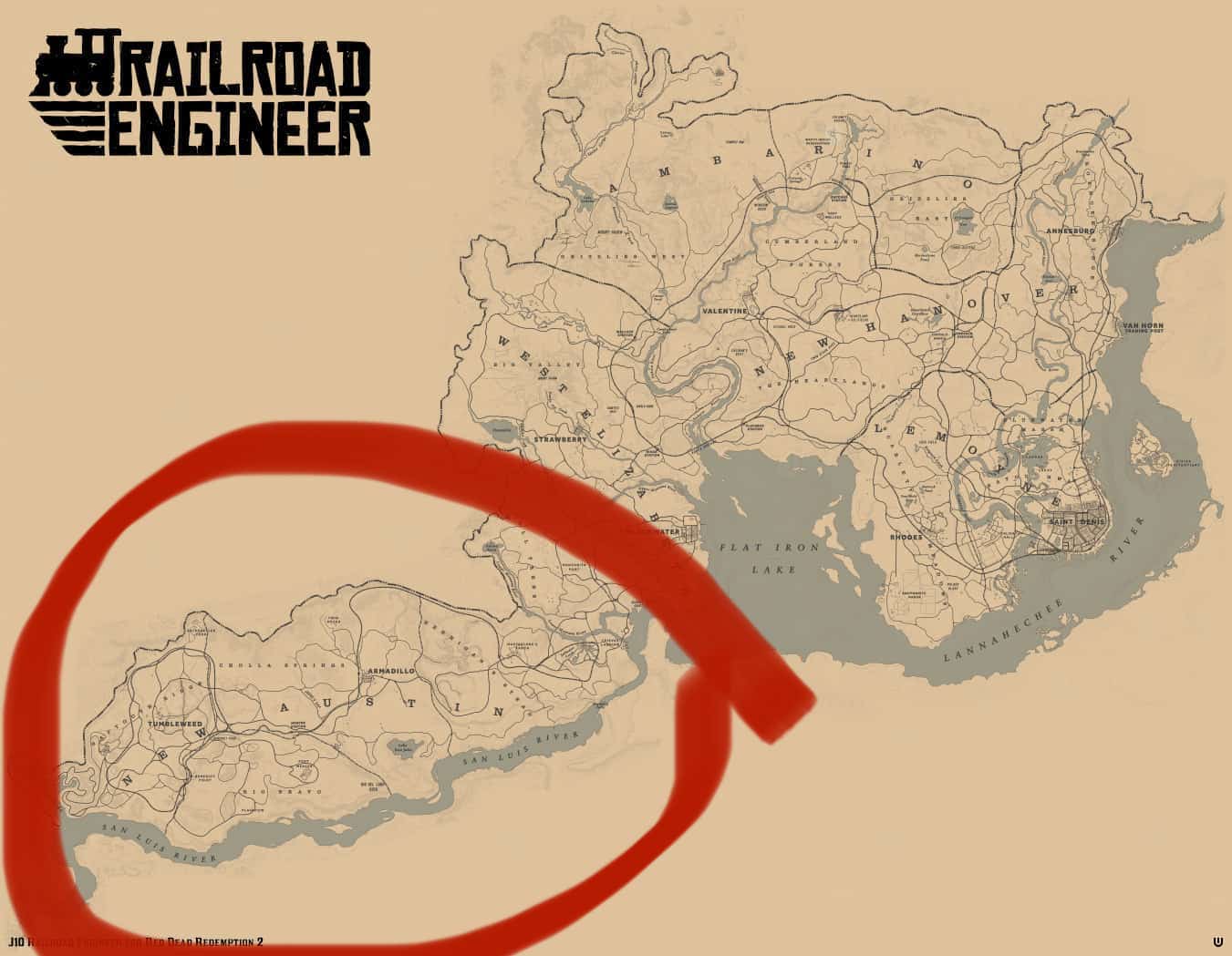 Ανοιγει μια εξτρα περιοχη out of nowhere, που πιανει το 1/4 κ κατι του ηδη υπαρχοντος χαρτη, και ειναι ουσιαστικα ολος ο χαρτης του 1ου red dead, με νεα γραφικα, απειρα easter eggs, νεα χωρια κ πολεις κ αποστολες, για να εχεις κατι ακομα να εξερευνησεις και να φας πολλες ωρες… το απολυτο easter egg δωρο στους φαν του πρωτου παιχνιδιου