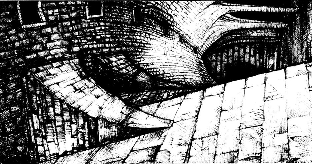 Στο πάτωμα πίσω απ’ τον λέβητα υπήρχε μια τρύπα. Πέντε-έξι απ’ τα μεγάλα πλακάκια του δαπέδου είχαν ξηλωθεί βίαια ενώ και το τσιμέντο από κάτω τους είχε διαλυθεί, αφήνοντας να χάσκει μια τρύπα που μετά βίας χώραγε έναν άνθρωπο. Από το άνοιγμα ξεπρόβαλλε η κορυφή ενός πελώριου κλαδιού· ήταν ξερό μα στιβαρό και γεμάτο μεγάλους ρόζους που εξείχαν σαν μικρά πατήματα – η κάτω άκρη του χανόταν μες στην τρύπα, στα έγκατα των θεμελίων της οικοδομής.