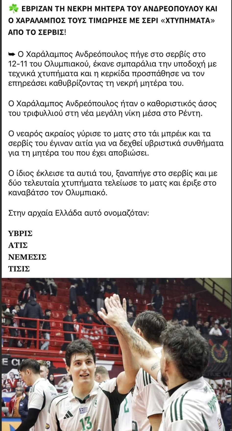 Ας ξεκινήσουμε απ τα σημαντικά που ειναι οτι ολοι οι σοβαροί άνθρωποι καταδικάζουν τέτοιες συμπεριφορες στον αθλητισμό ανεξαρτήτως χρώματος.
