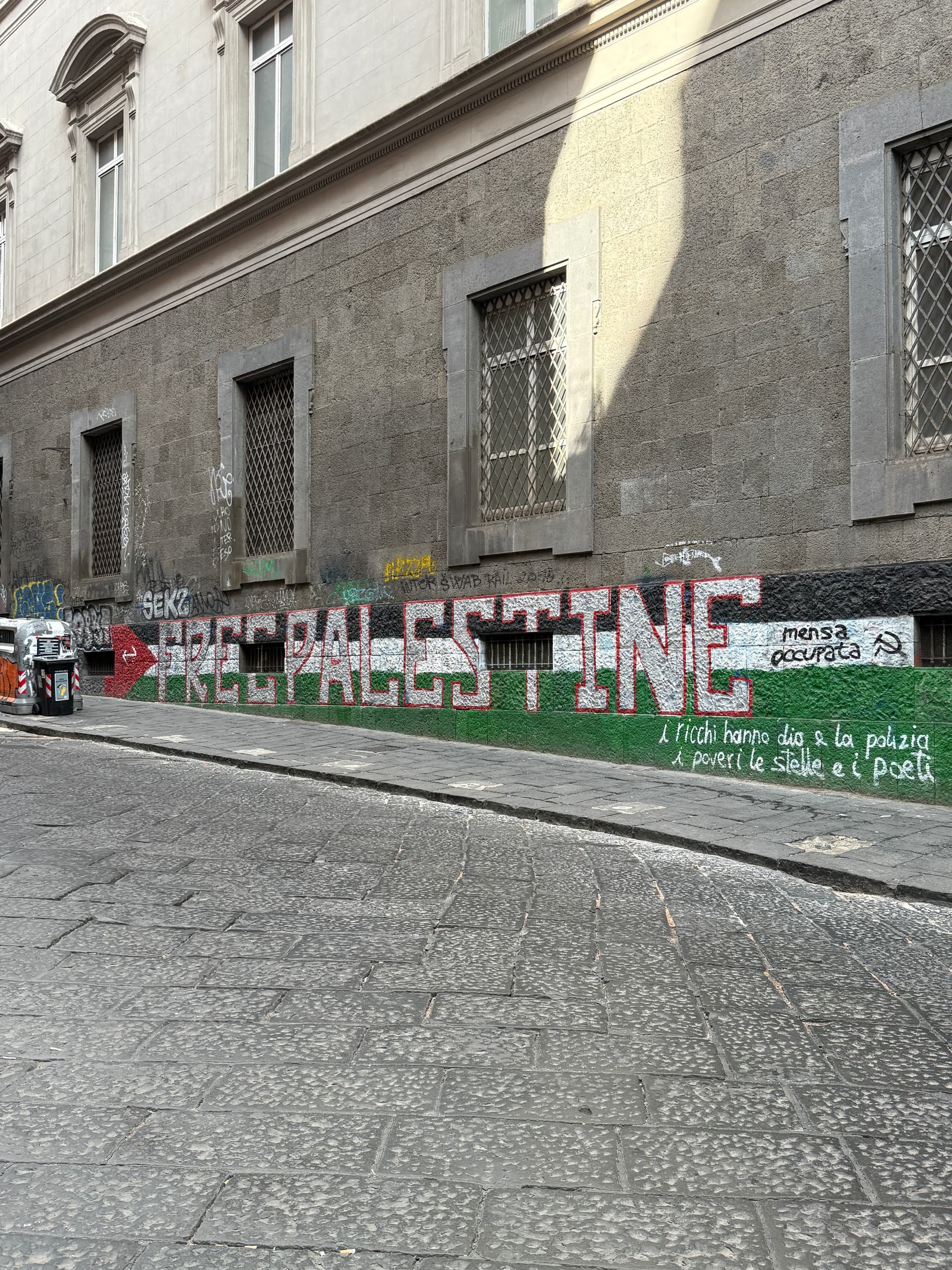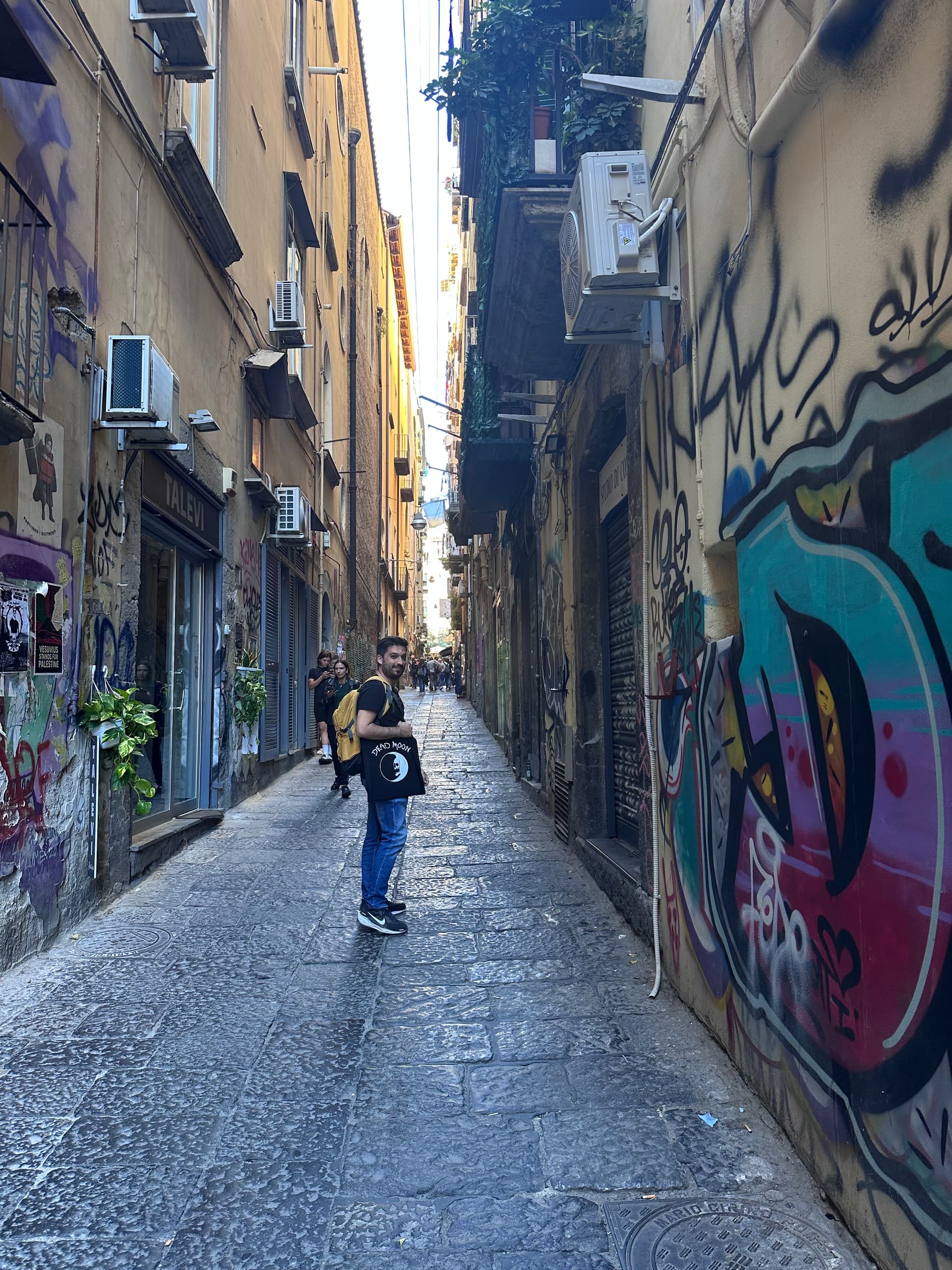 Μένα πολύ κεντρικά (δίπλα στο μετρό Universita) οπότε όλες οι αποστάσεις για τις βόλτες έβγαιναν άνετα με τα πόδια. Αυτό φυσικά είχε και το θετικό ότι βρίσκαμε διάφορα μαγαζάκια που δεν θα τα βλέπαμε αλλιώς, όπως ένα καφέ (rosticceria αν το λέω σωστά) που το βρήκαμε περπατώντας έναν δρόμο (από όλους αυτούς που νομίζεις ότι είναι πεζόδρομος αλλά περνάει κάθε είδους όχημα) που θύμιζε κάτι σαν την αγορά στην Αθηνάς ή τη Βαρβάκειο. Κάτσαμε για γρήγορο καφέ και ένα τέλειο κρουασάν, ενώ πχ απέναντί μας ήταν ένα υπαίθριο ψαράδικο. Φουλ αντιτουριστικά δηλαδή και ούλτρα φθηνά, γιατί τα αντίστοιχα στη Spaccanapoli τα πληρώσαμε με τριπλάσια τιμή.