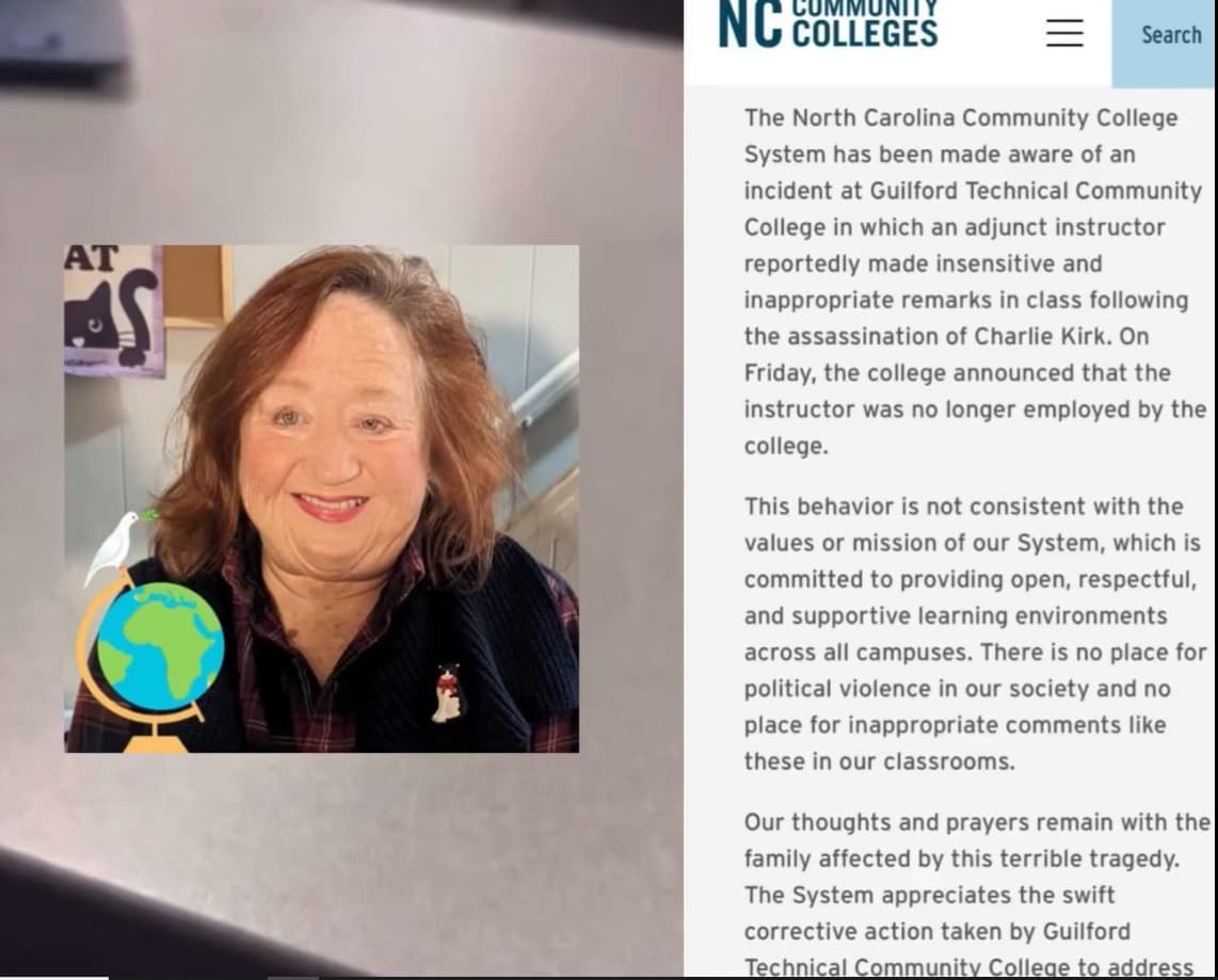 Adjunct Instructor : δεν εχει μονιμοτητα, και δεν ειναι καποια περιοπτη θεση που θα της λειψει. Το ξερω γιατι την ειχα κι εγω για καποια χρονια. Επισης, χαζομαρα της… δεν παμε να καθομαστε να λεμε σε φοιτητες/μαθητες τις προσωπικες μας πολιτικες και κοινωνικες αποψεις με τροπο που ξεπερναει τα ορια ενος ακαδημαικου περιβαλλοντος. Ειναι αντιεπαγγελματικη και κατακριτεα συμπεριφορα, ακομα κι αν ειχε δικιο σε αυτα που μπορει να ειπε. Εντωμεταξυ, Community College… μιλαμε για τρελα καταξιωμενη θεση για την οποια σιγουρα θα νοιαζοταν παρα πολυ η κυρια της φωτογραφιας. Παιζει να βγαζει πιο πολλα λεφτα αν γραφτει ταμειο ανεργιας.