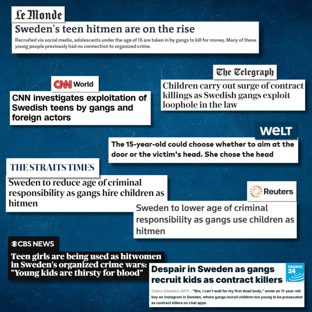 Οι σουηδικές αρχές έχουν παραδεχθεί ότι οι συμμορίες χρησιμοποιούν ανήλικους για σοβαρά εγκλήματα, όπως δολοφονίες, λόγω των νομικών κενών και των μειωμένων ποινών για ανήλικους. Αυτό έχει οδηγήσει την κυβέρνηση να εξετάσει τη μείωση της ηλικίας ποινικής ευθύνης από 15 σε 14 έτη, όπως αναφέρθηκε σε πρόσφατα δημοσιεύματα.